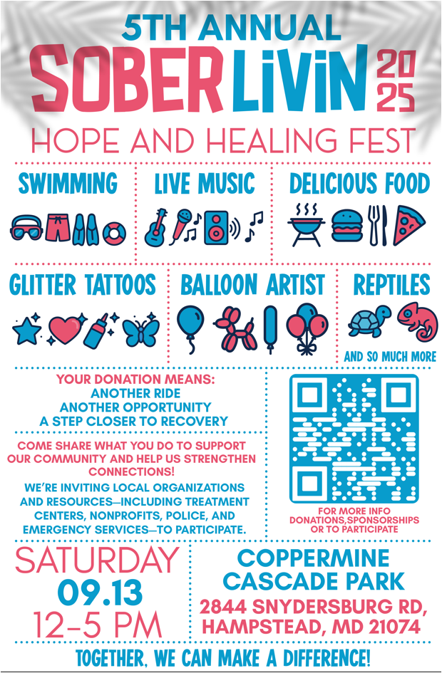 We’re back for our 5th year in a row and we aim to make it our best yet! In line with our mission and the spirit of our website, we are inviting local organizations and resources—such as treatment centers, nonprofits, police, and emergency services—to participate and share what they do to support our community. Our goal is to strengthen connections and ensure that those in need know where to turn for help. Join us for your favorite activities, including swimming, music, delicious food, a balloon artist, glitter tattoos, reptiles, and more!