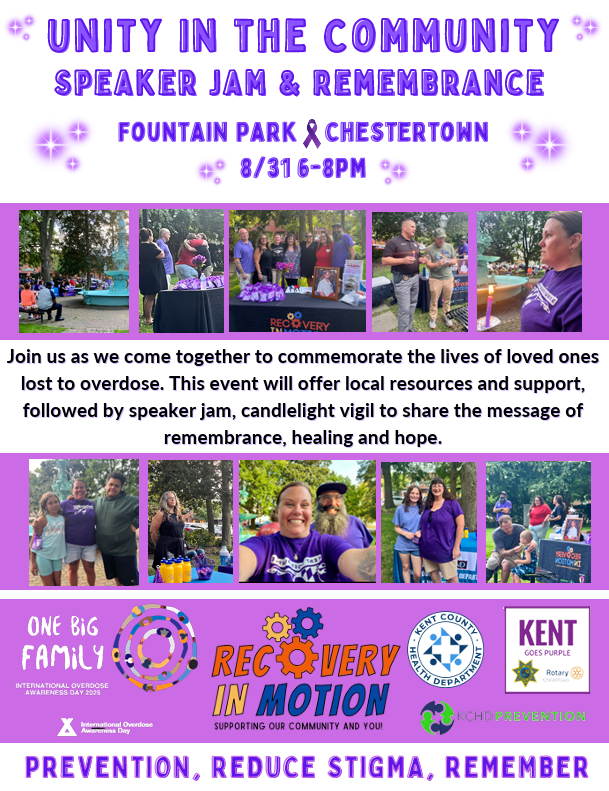 Join us as we come together to commemorate the lives of loved ones lost to overdose. This event will offer local resources and support, followed by speaker jam, candlelight vigil to share the message of remembrance, healing and hope.
