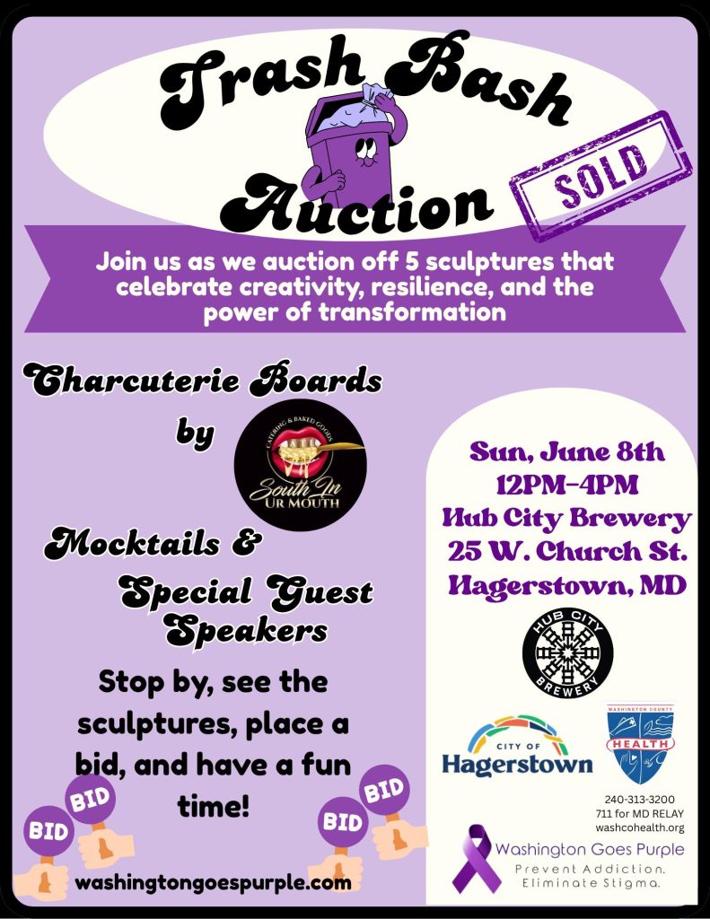 We will be auctioning off five unique pieces from Washington Goes Purple’s first-ever Trash Bash. In addition to the auction, there will be a charcuterie board available from South In Your Mouth, along with mocktails. We will also have guest speakers sharing their insights. All proceeds from winning bids will go towards the Washington Goes Purple Scholarship Fund.
